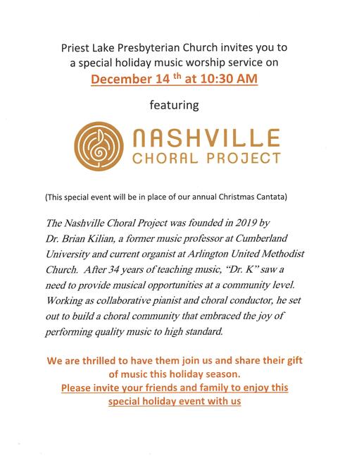 Join us on Sunday, December 21 at 3:00 PM as we spread Christmas cheer to our homebound members of Priest Lake Presbyterian Church.